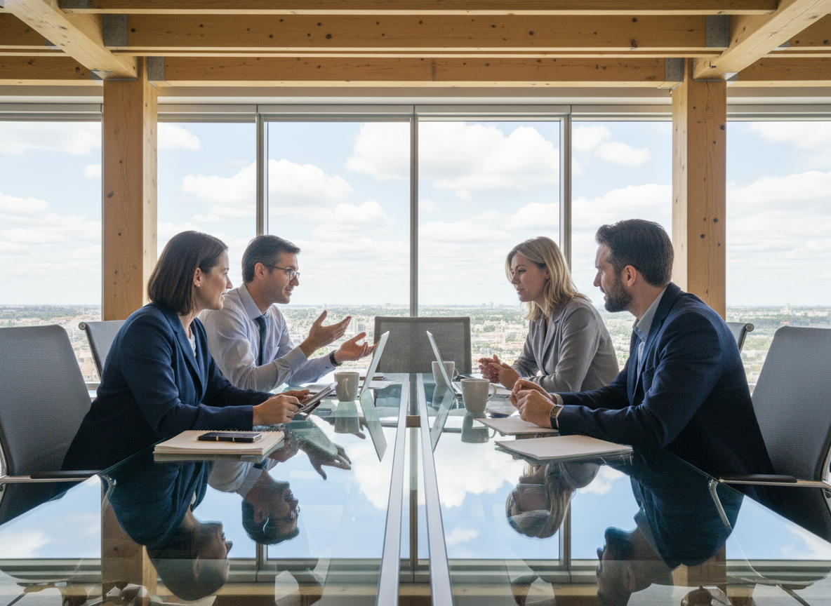 Groupe de professionnels en réunion dans un bureau moderne